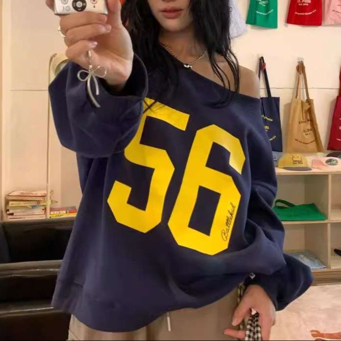 2000年代のスポーティーな雰囲気を再現したy2kファッションのスウェットプルオーバーです。